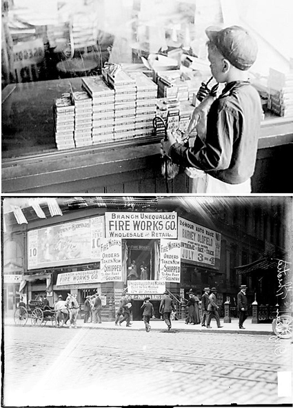 Figure 1: Every boy covets fireworks, as shown in this 1941 Russell Lee photograph (top) of the Fourth of July in Vale, Oregon, part of the Farm Security Administration photography series. The bottom photo is a turn-of-the-century view of fireworks for sale in Philadelphia.