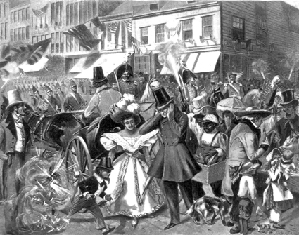 Figure 4: An 1894 drawing by Daniel Carter Beard (1850-1941) showing the pandemonium of a New York fireworks parade.
