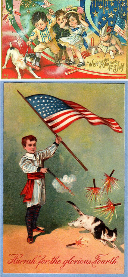 Figure 25: Postcard images emphasizing the inalienable right of Americans to light firecrackers.