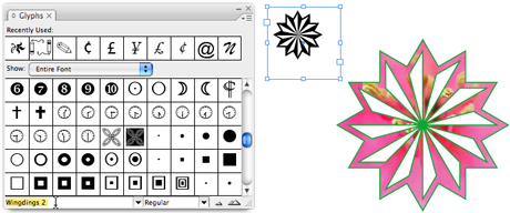 With that triumvirate, you can convert any funky character in the Glyphs panel (essential for scrolling through entire character sets) into an editable vector shape. Surely, I thought, I must have a dingbat font with a daisy-ish flower. Alas, I didn’t find the flower I wanted, but if I ever need a pinwheel, I’ll know where to look.