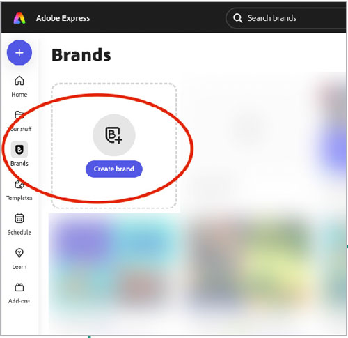 After you design a brand identity for your client, the next step is to add your assets to a brand kit. Open Adobe Express, and click Brands on the far left of the homepage. On the next page, click Create Brand to start creating your brand kit (Figure 1).