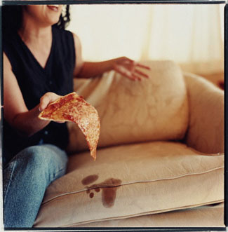 Angela Wyant: When I first started with Robin we did a shoot called Household Mishaps — spilling coffee, dropping pizza. Before that my work had no human element in it, it was just objects. So Robin said, just put a person in it and shoot. Then we did another one called Home Exercise, part of a series of things that happen at home.