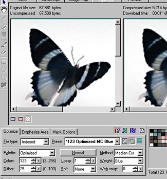 The previous version of SmartSaver Pro offered advanced image compression functions, such as side-by-side views of the original and optimized images, a choice of different sub-sampling routines for JPEG output, and transparent background based on either color selections or alpha-channel data. These basic compression functions have not changed. But Version 3.0 adds a number of fine-tuning controls. For example, when saving GIF images (or 8-bit PNGs) you can now tweak the palette by adding, deleting, and locking the values in individual color slots. You can even choose to snap an individual palette color to the closest Web-safe hue. SmartSaver Pro also supports lossy GIF, which delivers higher compression ratios by forcing adjacent pixels to the same color. If you are saving JPEG images instead, you can take advantage of separate compression controls for quality and chroma. When used properly, these tools help you to generate faster-downloading pictures without compromising quality.