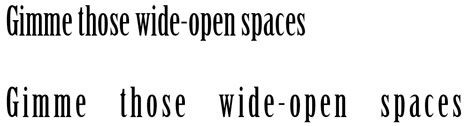 Frederick Goudy once said that anyone who would letterspace type would steal sheep. That seems a bit grumpy of old Fred, but there’s no doubt that when you allow spacing to become wildly exaggerated, you’re drifting into the nether regions of the typographic universe. You can’t rely on your programs alone to chart a path to readability. As always, you have to rely on your eyes and good judgment to avoid becoming lost in space.