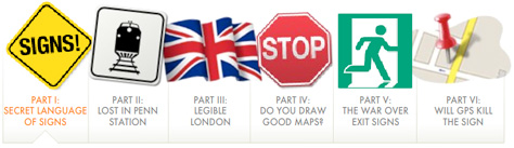 Slate, the daily Web magazine, has a new department called “Signs 2010: How they tell us where to go.” At press time, there are six articles in the series, all written by Julia Turner, and all full of interesting tidbits for graphic designers and other creative types.