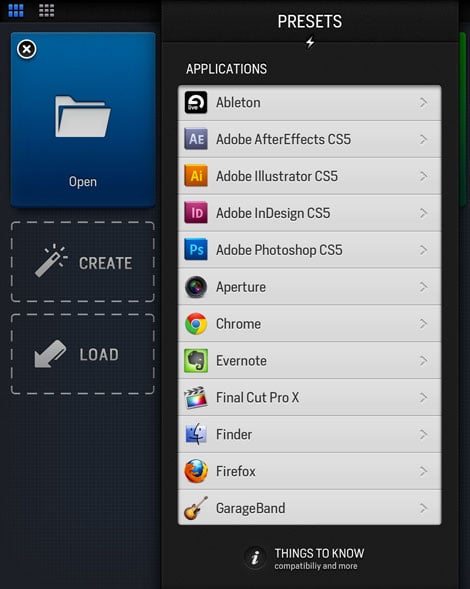 Actions supports the creation of subsets of actions, multi-touch gestures, and automatic re-connection with your computer. It also comes with built-in presets for popular applications like Photoshop, Lightroom, Illustrator, InDesign, and After Effects, Excel, Word, Powerpoint, Aperture, Final Cut, and more.