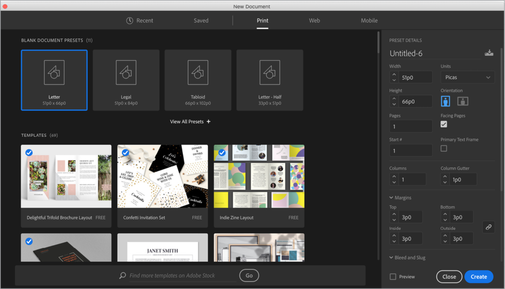 Editing the Default New Document Preset