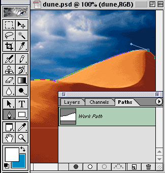 - Create a new work path by selecting the Pen tool and pressing the “Create new work path” button found in the Options bar.