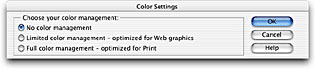 Figure 6: Simple as it gets. This is the Color Settings dialog in Photoshop Elements. The daunting dialog box in Photoshop is reduced to three simple options.