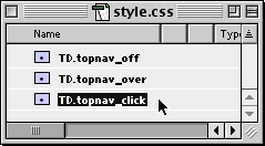 - Establish the style classes that will be used for the rollover and click state for the <td> tag. If you’re having trouble with this, check out my previous two articles (links above) relating to this subject.