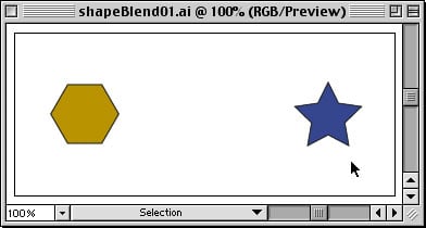 Figure 1: First create the two shapes you want to blend. - Before we blend the two shapes, let’s change the blend options by double-clicking the Blend tool. In the Spacing pulldown, choose Specified Steps. Considering LiveMotion’s default frame rate is 12, I suggest entering a number that works nicely with this number. Here I entered 24 steps (Figure 2). For the Orientation option, pick Align to Path and then click OK.