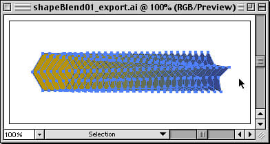 Figure 6: The resulting artwork once you expand your live blend. - Lastly, in the Layers palette select the blend group and choose Release to Layers from the palette’s turndown menu (Figure 7). Be sure the blend group Sublayer that is labeled <group> is still targeted in the palette and not the top-level labeled Layer 1 by default. Otherwise the release command will just release Layer 1 into a Layer 2, which isn’t what we want. With your blend properly released into separate layers, it’s now ready for import into LiveMotion. Save the document, still in Illustrator 8 format, one last time.