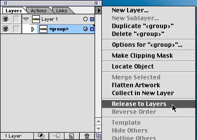 Figure 7: It’s important to have the <group> sublayer selected before choosing Release to Layers instead of the top layer.