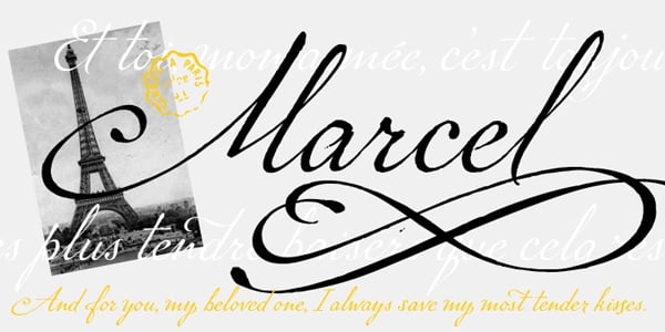 2. The type foundry P22.com is selling a wonderful new script typeface with quite a backstory. P22 Marcel is named after Marcel Heuze, a Frenchman who was conscripted into a German labor camp during World War II. While in the camp, Marcel wrote many letters to his family in rural France, and those letters were used by designer Carolyn Porter as the basis for the font. P22 Marcel is available as a basic font or in a Pro version with over 1300 characters and many OpenType features. And along with the main Marcel typeface, there are two fonts featuring historical post marks and inspector marks, plus a roman titling font designed to accompany the script.