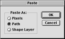 You can also get vectors from Illustrator into Photoshop. If you select the Illustrator objects and then copy and paste, a dialog box (Figure 6) appears that lets you control whether you want the path converted into: pixels (on their own layer), paths (added to Photoshop’s Paths palette), or shapes (as a new shape layer). (If you’re wondering what happened to the anti-alias option that was in previous versions of this dialog box, it’s been moved to the Options panel at the top of the window.)