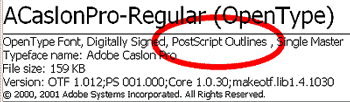 One more pleasant surprise has been the information that is available when I double click a font file in the Windows Control Panel> Fonts folder. The Windows Font Viewer opens a very complete font display page with a type book-like display of the typeface. Even better, it lists details about the font such as whether or not the Open Type font is using TrueType or PostScript font outlines (see Figure 5). I find this useful because I would rather use the PostScript versions of Open Type fonts to make sure they are closer to the original Type 1 fonts that I have used for years. This minimizes the change of text reflow when I switch from Type 1 to Open Type fonts.