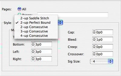 Figure 2: The InBooklet SE dialog box has an impressive set of controls for imposing pages into printer spreads.