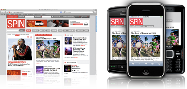 Another edited Mobify example (and the full-site page) from Spin magazine. Click the images for a larger view.