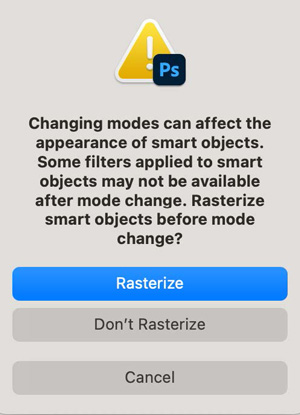 - When Photoshop asks you to rasterize everything, choose Don’t Rasterize.