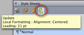 In QuarkXPress 8, if you apply a style sheet and then decide you want to change the formatting of the style sheet, you can simply select some styled text that uses the new formatting and then update the style sheet to match by clicking the Update button in the Style Sheets palette.