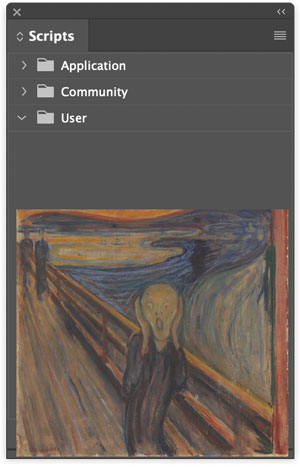 So, my little heart-stopping story had a happy ending. But I share it as a cautionary tale. If you have a script collection too, please be sure it’s backed up on a regular basis. Because even if you never encounter this exact same roll-back/wipeout scenario, you never want to feel that gut punch of looking at an empty Scripts panel in InDesign.