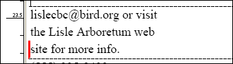 Remember the evil red dot? Here’s the culprit — the overset cell text— in Galley view, completely accessible and editable without messing up the table formatting: