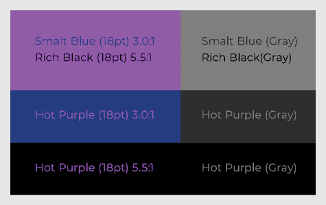 Avoid using color alone to convey information. Pair it with text, icons, or patterns to ensure everyone can understand your design. Try viewing your design in black and white. If the information still makes sense without color, you’re on the right track!