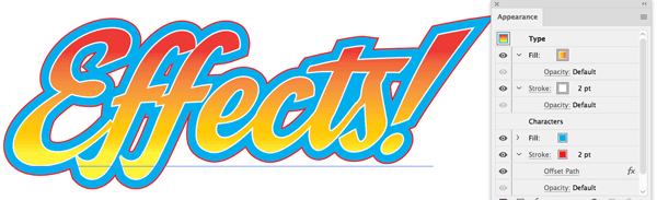 In addition to allowing you to modify or remove effects, the Appearance panel is also where you can go to apply multiple fills and strokes to type or other objects. This is another way of creating truly unique looks that you just can’t make with InDesign alone.