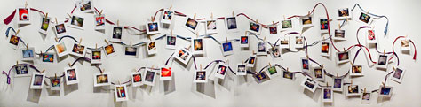 iPhone art display in my gallery, Photo Mirage. The prints are clothes-pinned to paper ropes, and purchasers simply pluck desired prints off the line.