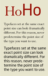 Figure 2. Perpetua and Neo Sans look dramatically different set in the exact same point sizes (52 pt. and 12/14 pt. respectively).