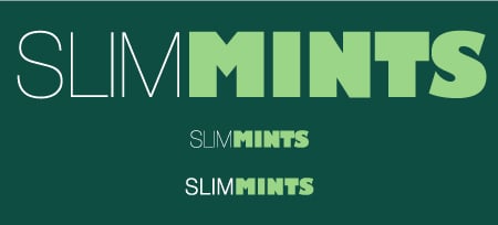 This logo set in Helvetica Neue Ultra Light and Gill Sans Ultra Bold looks fine at the larger size (top), but when reduced (middle), it looks too tight, and the word SLIM looks too light. The improved reduced version (bottom) has its tracking opened up, as well as Helvetica Neue Light replacing the Ultra Light.