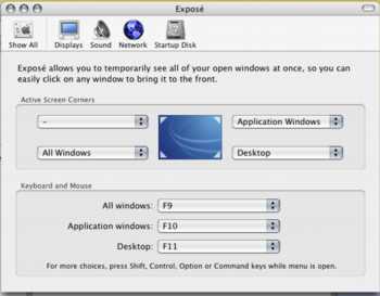 Exposé offers three views and behaviors to mitigate the clutter: It can clear the desktop of all windows; tile all the windows of the current applications and let you easily sort through them (useful to finding that buried image when editing multiple photos in Photoshop); and finally, organize all the open windows on the desktop and then permit quick movement between them. It sounds complicated but it’s easily managed with Function keys.