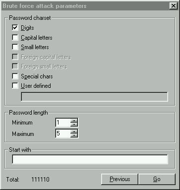 Brute force is self-explanatory. Crackers use software that tries lots of different combinations of letters and numbers, until the correct password is entered. As you can imagine, a short password will be discovered quickly with this method, especially if the password is made up only from numbers. There are just only so many combinations with a set of 10 characters.