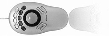 Figure 3: Contour A/V Solutions, a.k.a. CAVS, makes the ShuttlePRO controller. In the middle of the USB device sits its jog shuttle knob, with a set of 9 programmable buttons on the top, and two pairs of mouse buttons on the bottom.