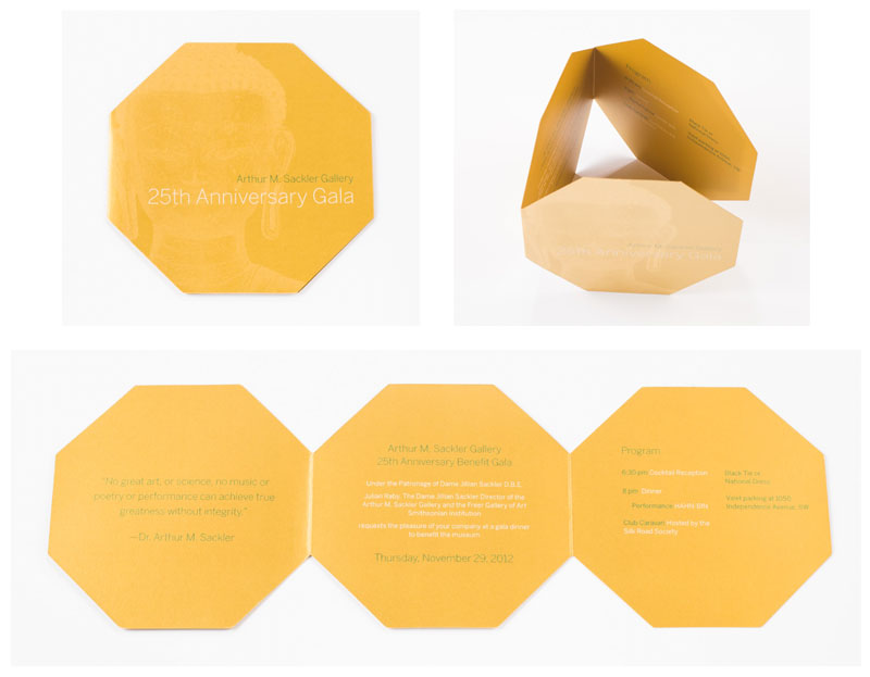 Figure 5. Playing with perimeter shape: an octagonal-shaped Tri-Fold designed as an insert for a 25th Anniversary Gala invitation (Photos: Chris Paulis Photography)