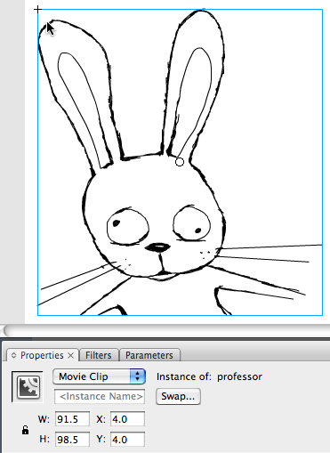 Figure 6: The X and Y coordinates match the registration point, which is the upper left corner of this random movie clip symbol.