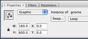 5. With the graphic instance (of the gnome) still selected, type 0 into the X text box and type 0 into the Y text box if they aren’t already set to 0, as shown in Figure 7.