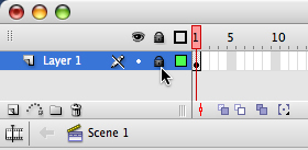 1. Select Layer 1 in the Timeline and click the dot below the lock icon, as shown in Figure 8.