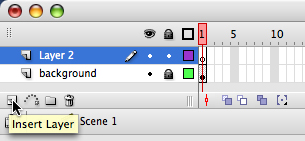 1. Select the background layer on the Timeline and click the Insert Layer button to create a new, empty layer.