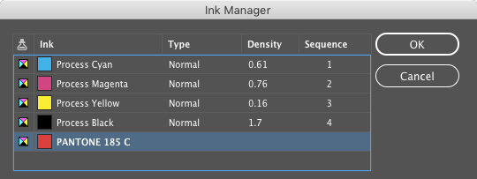 If you have spot colors in your document, they’ll show up here in the list of inks.
