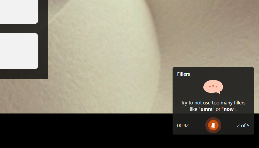 Are you guilty of using too many “Ums” or “Ers”? Every time you do, Presenter Coach is going to give you a real-time alert.