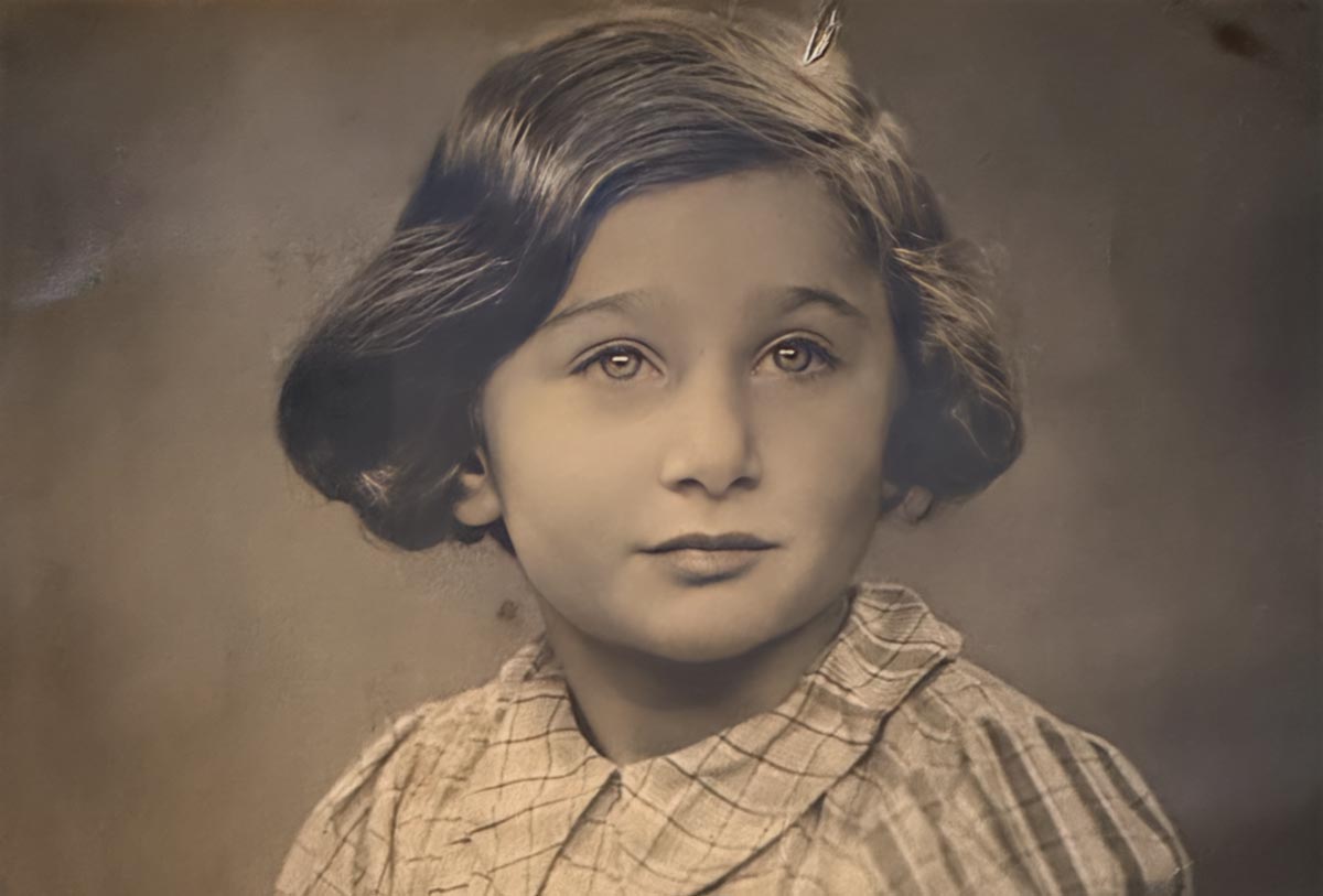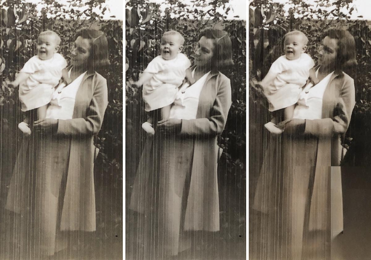 Photoshop’s Firefly engine is good at enhancing detail in old photos. This photo of my mother is soft focus, and includes some tears and blemishes.