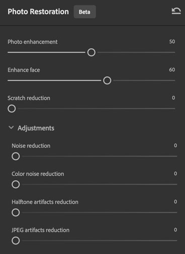 You’ll find Photo Restoration at the bottom of the list of Neural Filters (choose Filter > Neural Filters).
