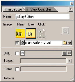 Figure 11: The Rollover inspector makes it very easy to add rollovers in GoLive.