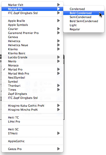 But when I went to try to find Myriad Pro Bold Condensed today, it was missing, and I knew that I had it active on my system (I had just used it in a different file earlier in the day).