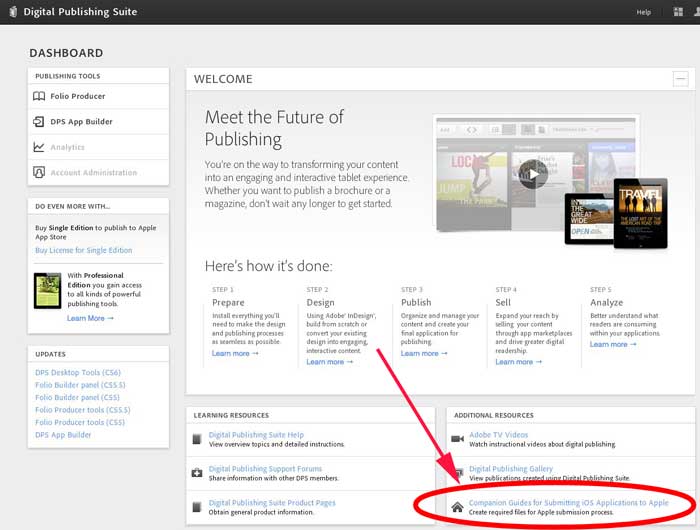 Sometimes Adobe offers great resources, but doesn’t make it entirely obvious where to get them. If you were looking for the excellent new Step by Step Guide to Publishing iPad Apps with DPS Single Edition, you might not know where to find it.
