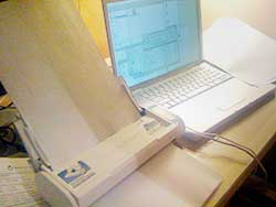 The 500 is no longer available; it was replaced by the ScanSnap 510M. The 510M scans 18 sheets of paper per minute… double-sided. That’s 36 pages per minute — faster than most duplex laser printers can spit out pages. The smaller 300M scans just 8 sheets per minute, but its slower speed is balanced by an even cooler trick: It’s only 3.1 pounds and can run on USB power, so you can use it in your car. (Not while you’re driving, please.)