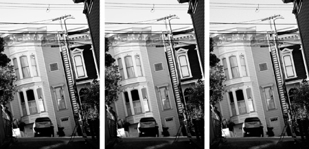 Figure 3: From left to right, Exposure’s emulation of Ilford Delta 100, Kodak Plus-X 125, and Kodak Tri-X400. Click on the image for a larger version.